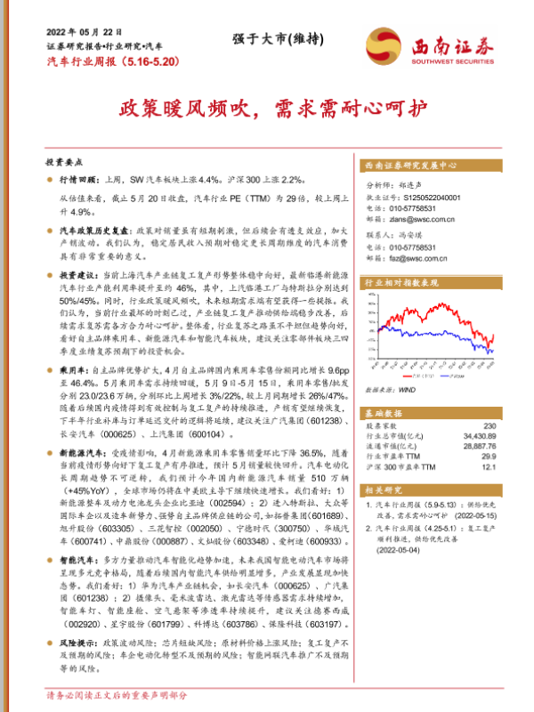 【西南证券】【20220522】20220522-西南证券-汽车行业周报:政策暖风频吹,需求需耐心呵护-15页 行业研究