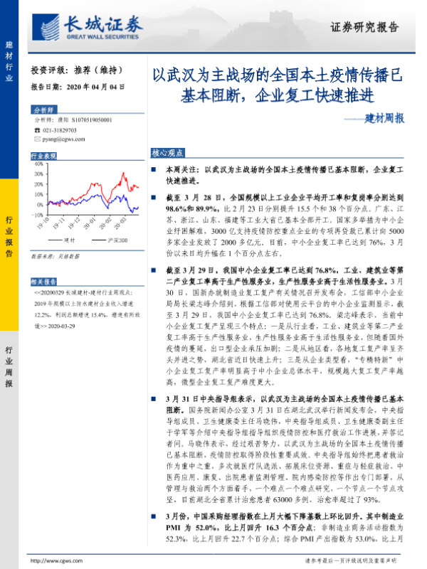 【长城证券】【20200404】以武汉为主战场的全国本土疫情传播已基本阻断,企业复工快速推进-21页 行业研究