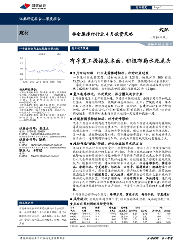 【国信证券】【20200409】非金属建材行业4月投资策略:有序复工提振基本面,积极布局水泥龙头-23页 行业研究