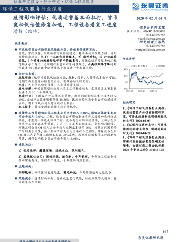 【东吴证券】【20200204】环保工程及服务行业深度:疫情影响评估-17页 行业研究