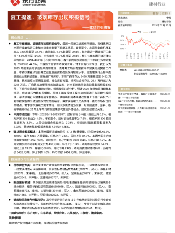 【东方证券】【20230220】建材行业周报:复工提速,玻璃库存出现积极信号-21页 行业研究
