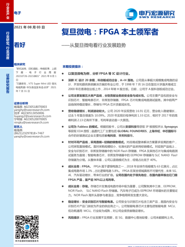 【申万宏源】【20210803】电子行业从复旦微电看行业发展趋势:复旦微电,FPGA本土领军者-23页 行业研究