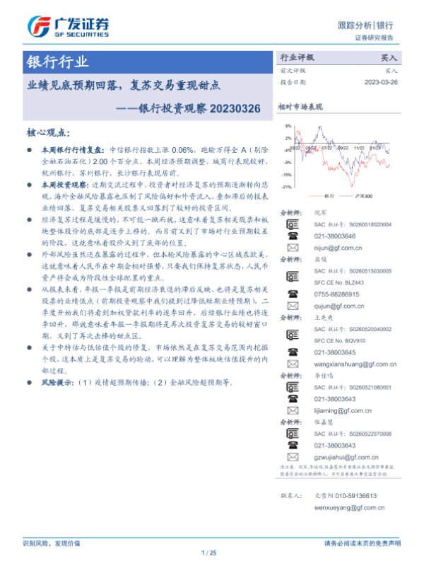 【广发证券】【20230326】银行投资观察:业绩见底预期回落,复苏交易重现甜点-25页 行业研究