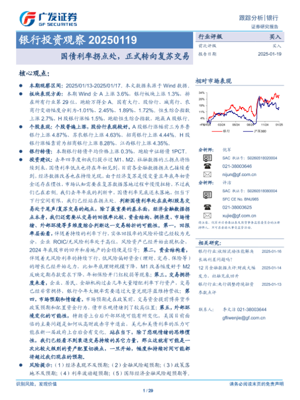 【广发证券】【20250119】银行投资观察:国债利率拐点处,正式转向复苏交易-29页 行业研究