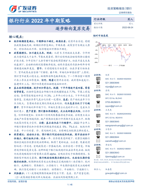 【广发证券】【20220624】银行行业2022年中期策略:逐步转向复苏交易-45页 行业研究