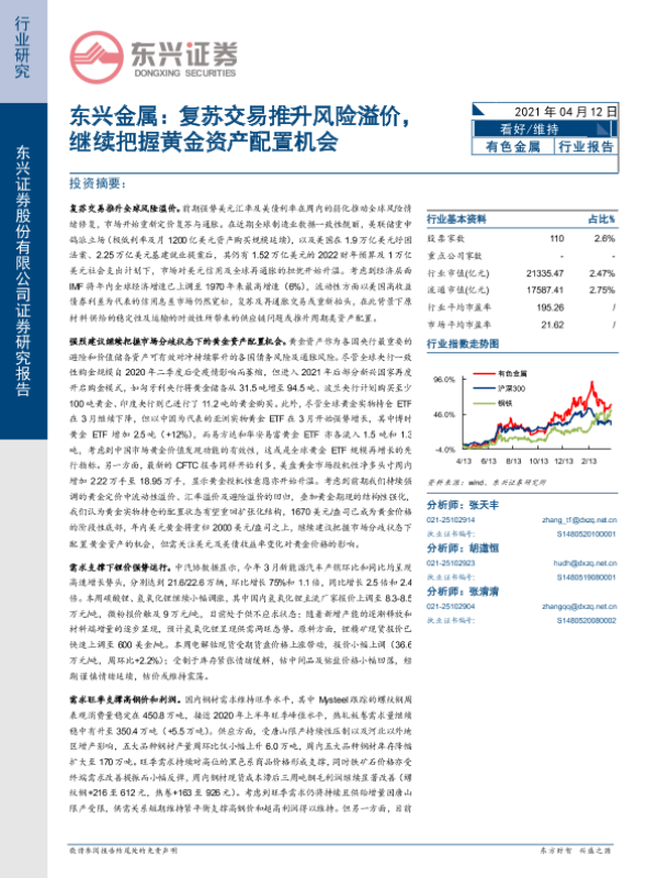 【东兴证券】【20210412】东兴金属:复苏交易推升风险溢价,继续把握黄金资产配置机会-26页 行业研究