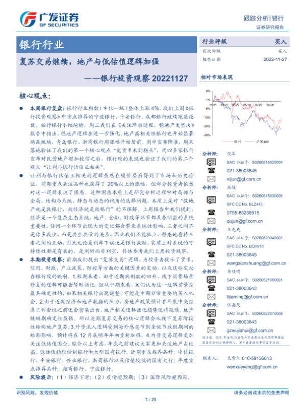 【广发证券】【20221127】银行投资观察:复苏交易继续,地产与低估值逻辑加强-23页 行业研究