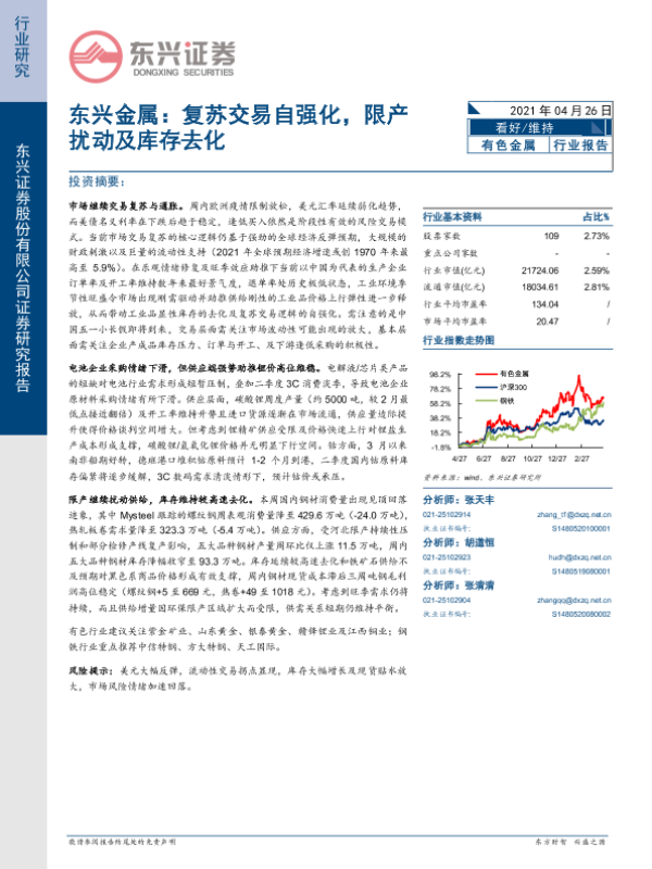 【东兴证券】【20210426】东兴金属:复苏交易自强化,限产扰动及库存去化-24页 行业研究