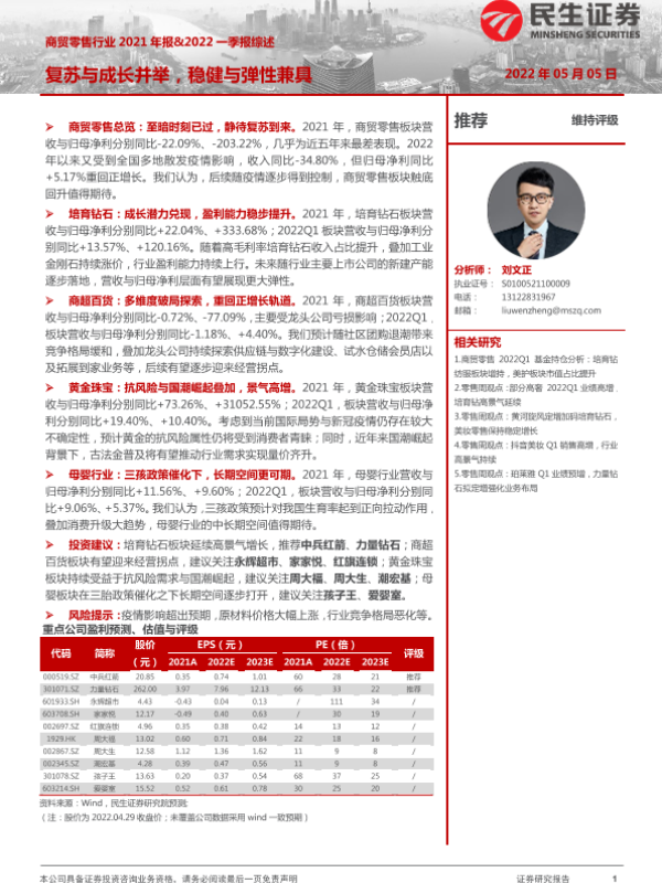 【民生证券】【20220505】商贸零售行业2021年报&2022一季报综述-20页 行业研究