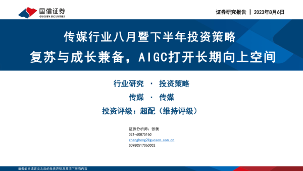【国信证券】【20230806】传媒行业八月暨下半年投资策略-46页 行业研究