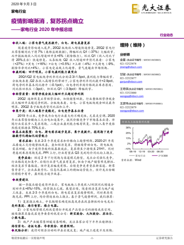 【光大证券】【20200903】家电行业2020年中报总结:疫情影响渐消,复苏拐点确立-20页 行业研究