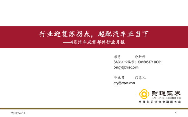 【财通证券】【20190414】4月汽车及零部件行业月报:行业迎复苏拐点,超配汽车正当下-21页 行业研究