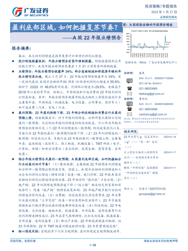 【广发证券】【20230127】A股22年报业绩预告:盈利底部区域,如何把握复苏节奏?-23页 行业研究