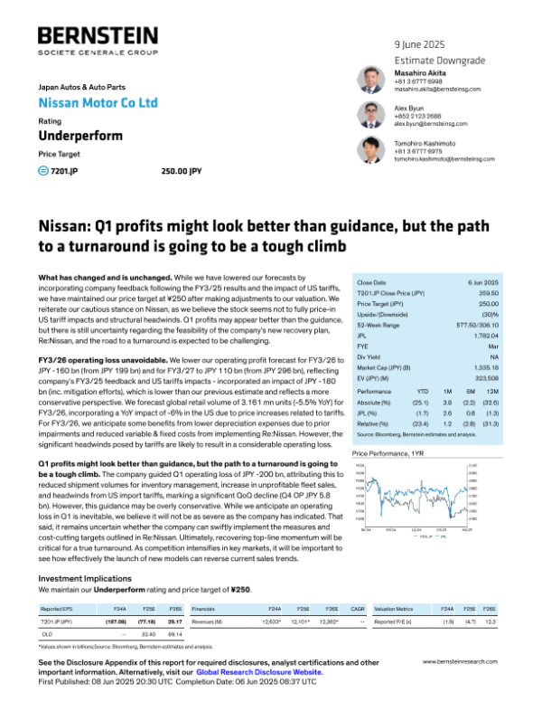【Bernstein】【20250609】Q1 profits might look better than guidance, but the path to a turnaround is going to be a tough climb-17页 公司研究
