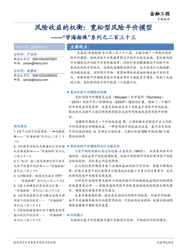【华安证券】【20250423】风险收益的权衡:宽松型风险平价模型-20页 证券期货研究报告