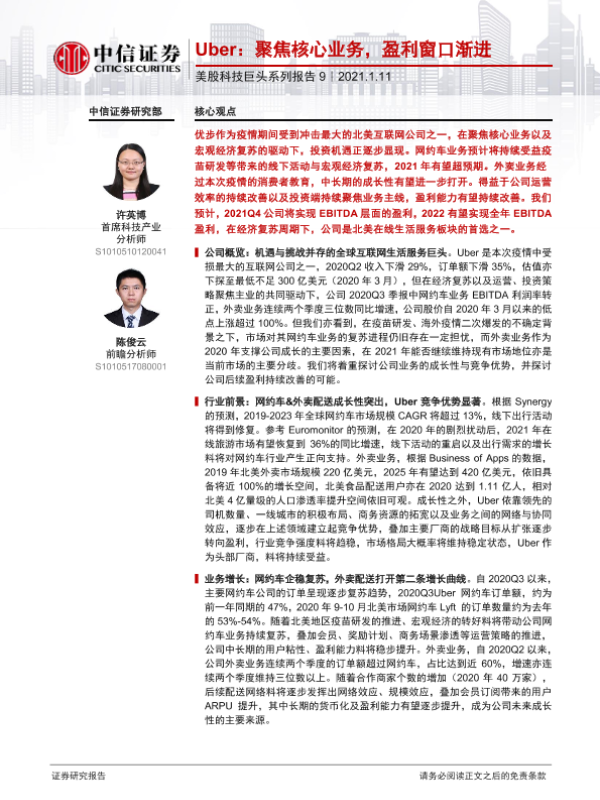 【中信证券】【20210111】Uber:聚焦核心业务,盈利窗口渐进-30页 行业研究