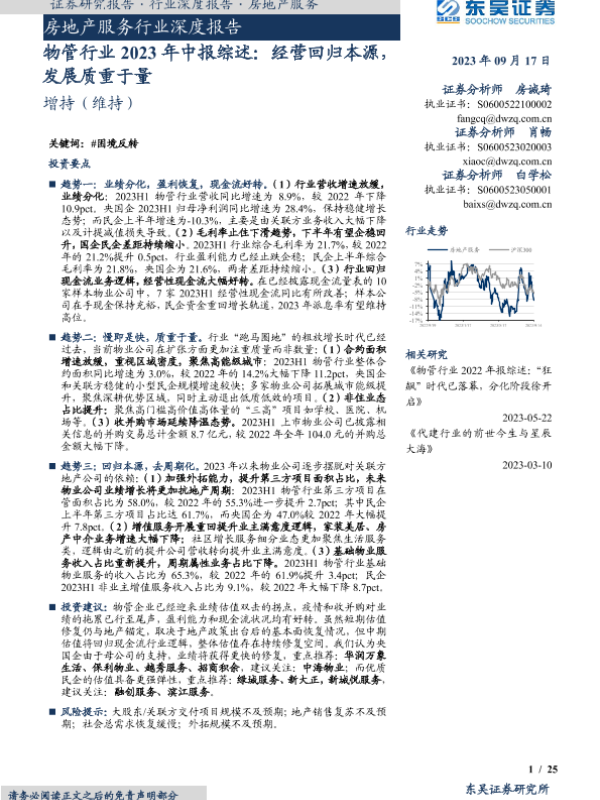 【东吴证券】【20230917】房地产服务行业深度报告:物管行业2023年中报综述,经营回归本源,发展质重于量-25页 行业研究
