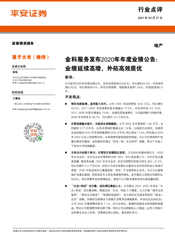 【平安证券】【20210327】金科服务发布2020年年度业绩公告-5页 行业研究