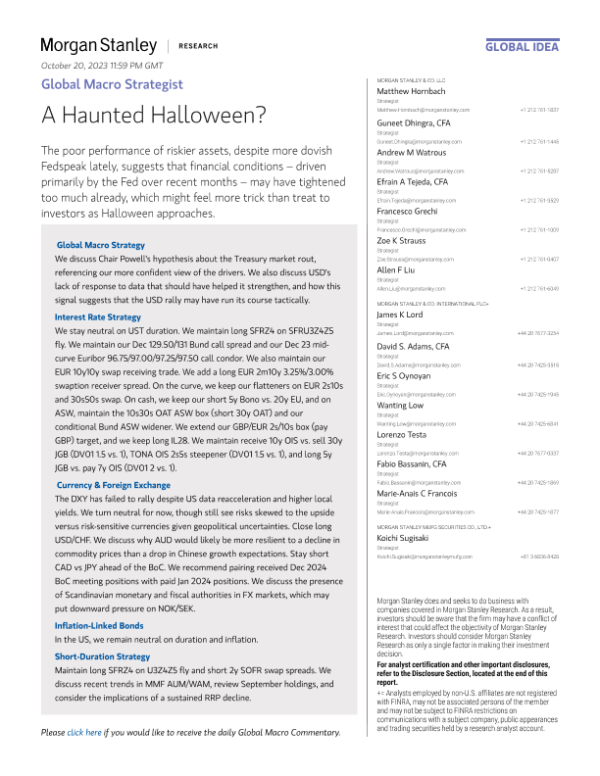 【Morgan Stanley】【2023】Morgan Stanley Fixed-Global Macro Strategist A Haunted Halloween-103页 宏观策略