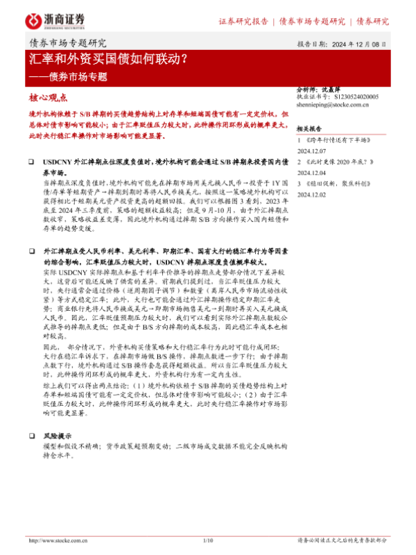 【浙商证券】【20241208】债券市场专题:汇率和外资买国债如何联动?-10页 行业研究