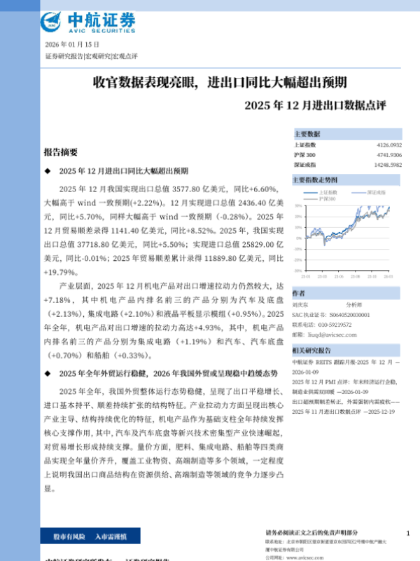【中航证券】【202601】2025年12月进出口数据点评_收官数据表现亮眼_进出口同比大幅超出预期-8页 证券期货研究报告
