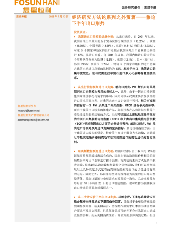 【复星恒利】【20220713】宏观专题:经济研究方法论系列之外贸篇_兼论下半年出口形势-15页 行业研究