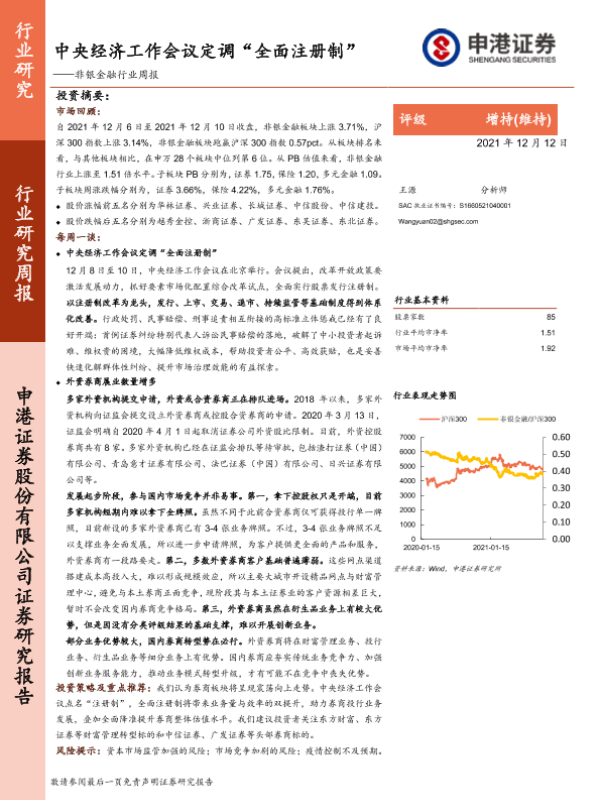 【申港证券】【20211212】非银金融行业研究周报:中央经济工作会议定调“全面注册制”-13页 行业研究