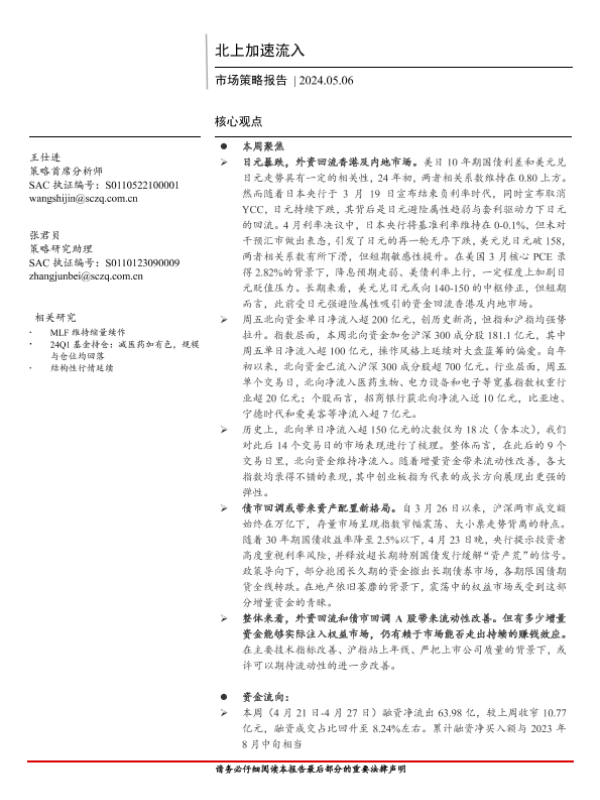 【首创证券】【20240506】市场策略报告:北上加速流入-18页 行业研究