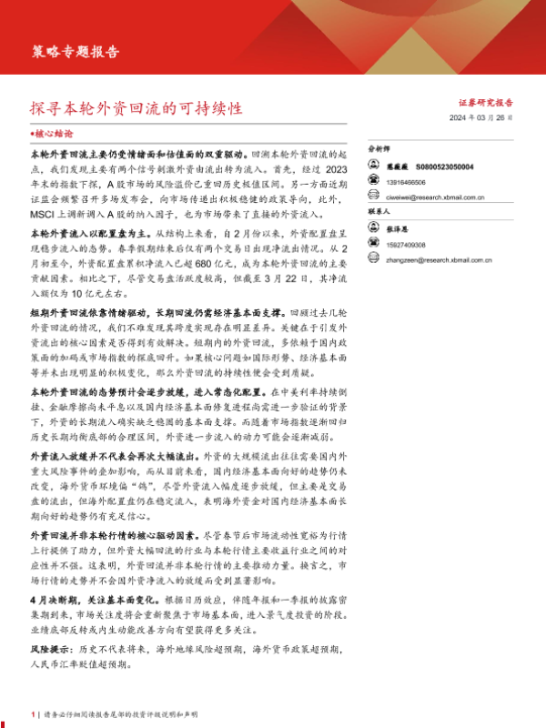 【西部证券】【20240326】策略专题报告:探寻本轮外资回流的可持续性-21页 行业研究