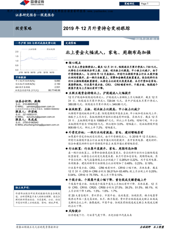 【国信证券】【20200105】2019年12月外资持仓变动跟踪-19页 证券期货研究报告