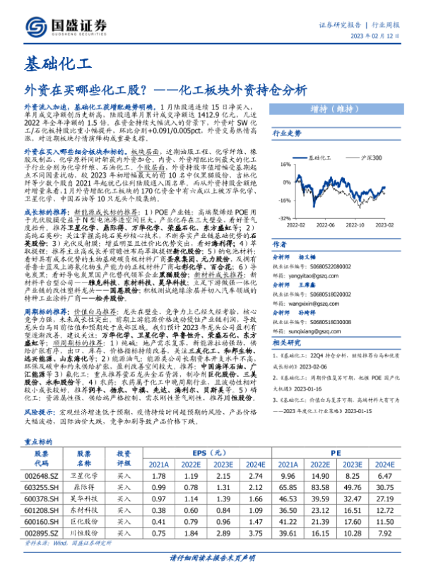 【国盛证券】【20230212】外资在买哪些化工股?——化工板块外资持仓分析-31页 行业研究