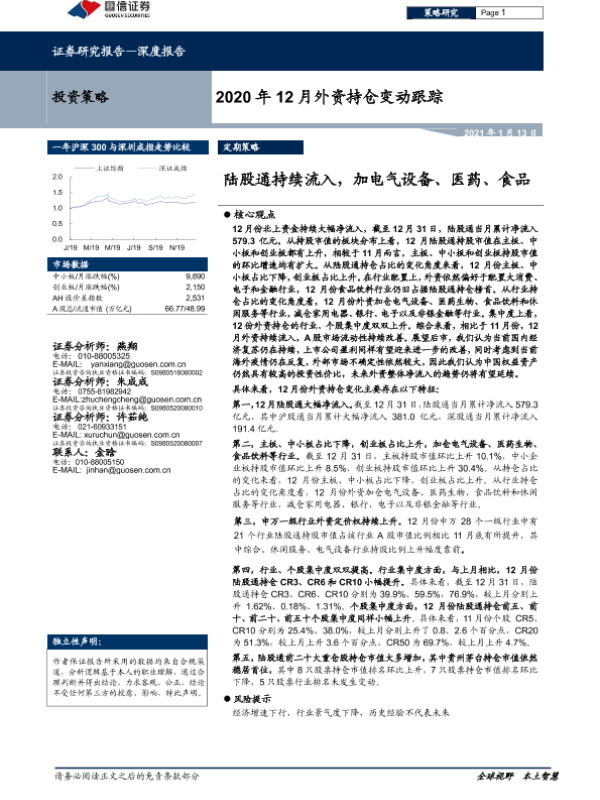 【国信证券】【20210113】2020年12月外资持仓变动跟踪:陆股通持续流入,加电气设备、医药、食品-21页 行业研究