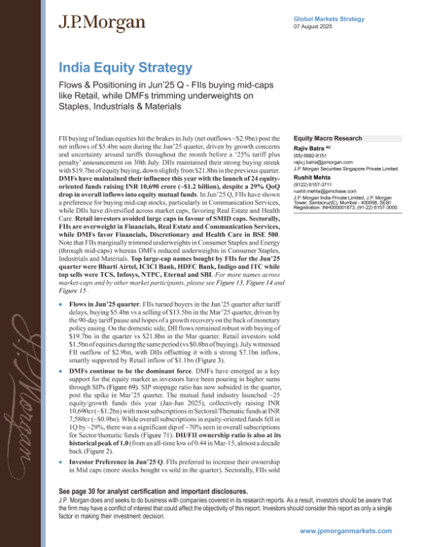 【J.P. Morgan】【202508】JPMorgan-India Equity Strategy Flows Positioning in Jun’25 Q-34页 行业研究