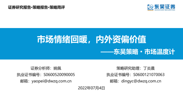【东吴证券】【20220704】策略·市场温度计:市场情绪回暖,内外资偏价值-26页 行业研究