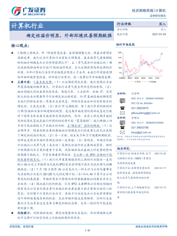 【广发证券】【20210124】20210124-广发证券-计算机行业投资策略周报:确定性溢价明显,外部环境改善预期较强-8页 行业研究
