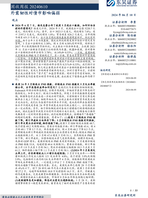 【东吴证券】【20240610】固收:外需韧性对债市影响偏弱-33页 行业研究