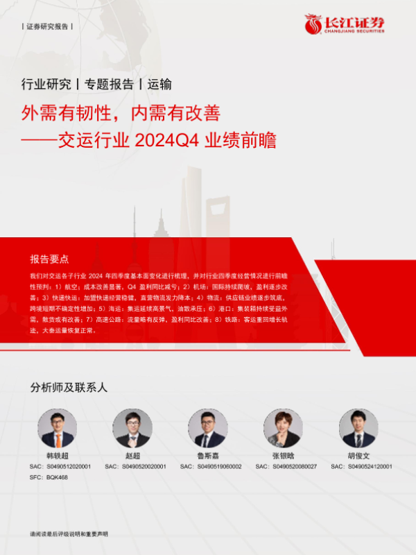 【长江证券】【20241229】交运行业2024Q4业绩前瞻:外需有韧性,内需有改善-14页 行业研究