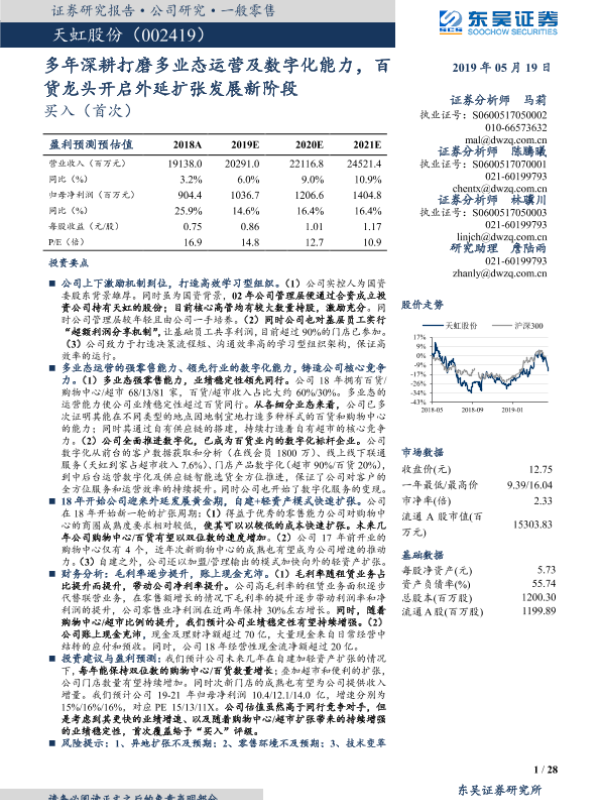 【东吴证券】【20190519】多年深耕打磨多业态运营及数字化能力,百货龙头开启外延扩张发展新阶段-28页 行业研究
