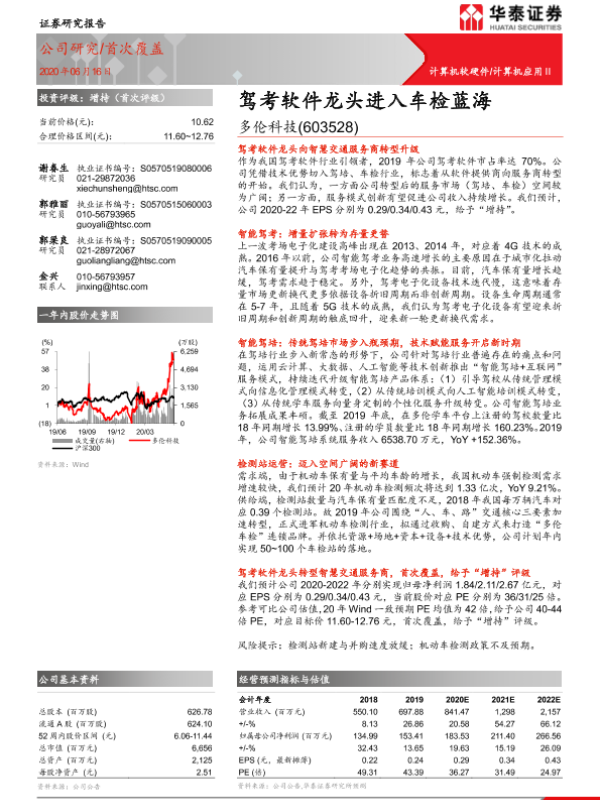 【华泰证券】【20200616】多伦科技(603528.SH)-驾考软件龙头进入车检蓝海-25页 行业研究