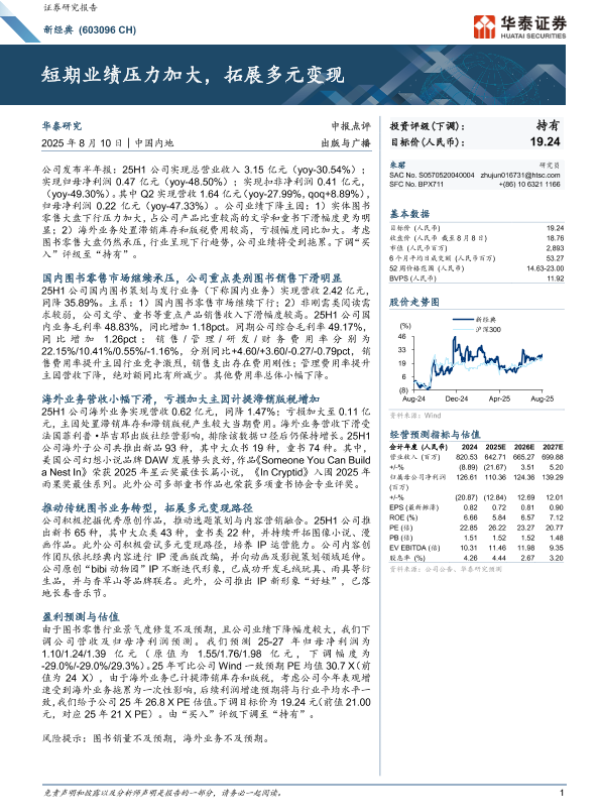 【华泰证券】【20250810】短期业绩压力加大,拓展多元变现-6页 公司研究