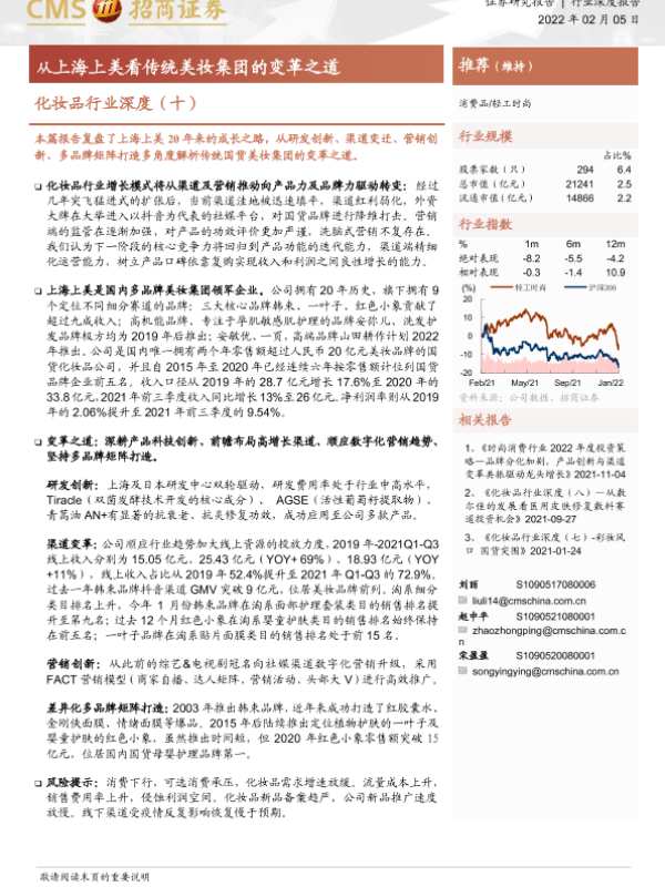【海通证券】【20220205】化妆品行业深度(十):从上海上美看传统美妆集团的变革之道-16页 行业研究