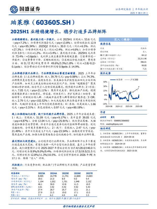 【国盛证券】【20250829】珀莱雅-2025H1业绩稳健增长-稳步打造多品牌矩阵-3页 证券期货研究报告
