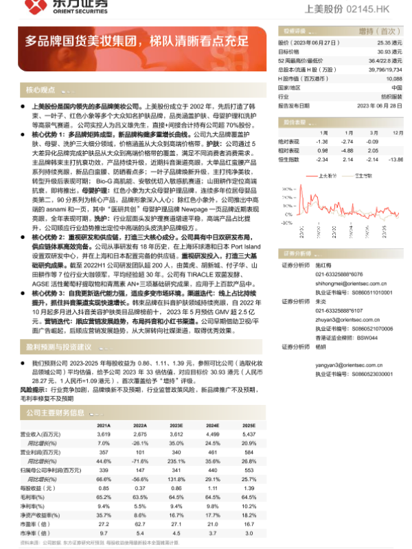 【东方证券】【20230628】上美股份(02145)多品牌国货美妆集团,梯队清晰看点充足-36页 行业研究