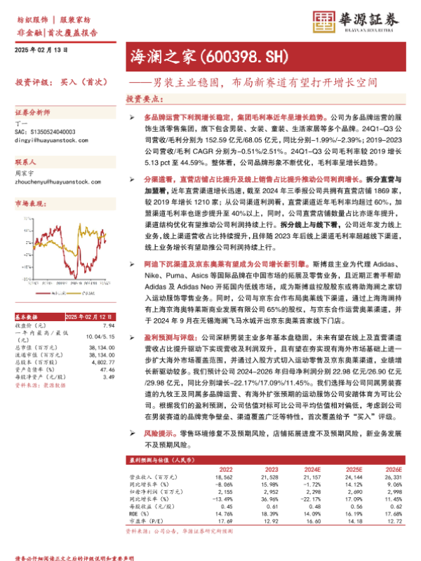 【华源证券】【20250213】海澜之家(600398)男装主业稳固,布局新赛道有望打开增长空间-14页 行业研究