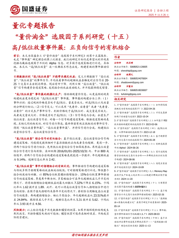 【国盛证券】【2021】量化专题报告:“量价淘金”选股因子系列研究(十五)高/低位放量事件簇:正负向信号的有机结合-21页 证券期货研究报告