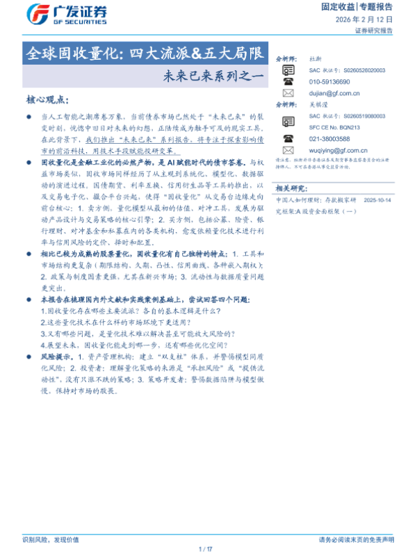 【广发证券】【202603】全球固收量化:四大流派&五大局限-17页 证券期货研究报告