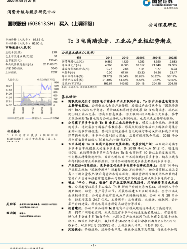 【西部证券】【20200609】20200609-西部证券-国联股份-603613.SH-首次覆盖:产业互联网平台领跑者,To B龙头快速崛起-33页 行业研究