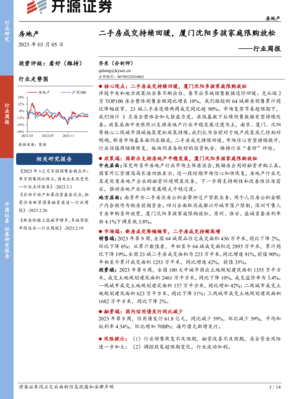 【开源证券】【20230305】房地产行业周报:二手房成交持续回暖,厦门沈阳多孩家庭限购放松-14页 行业研究