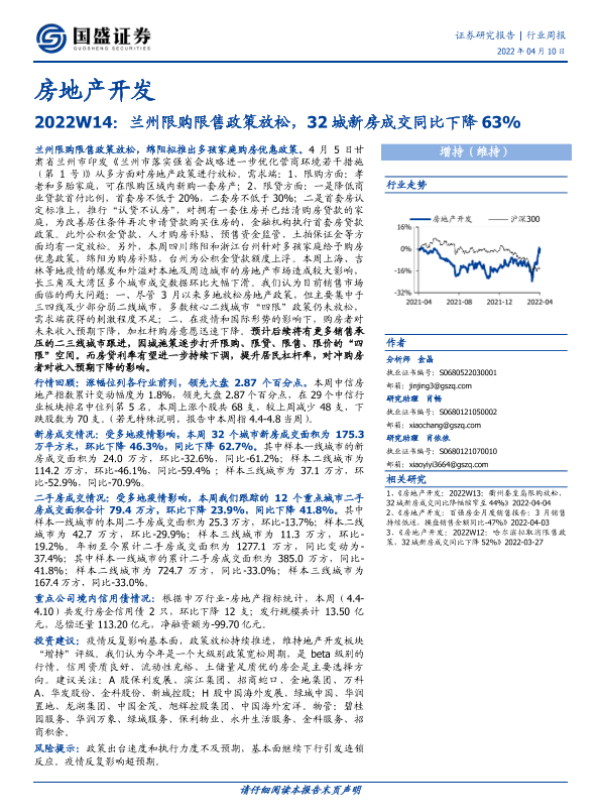 【国盛证券】【20220410】2022W14:兰州限购限售政策放松,32城新房成交同比下降63%-15页 行业研究