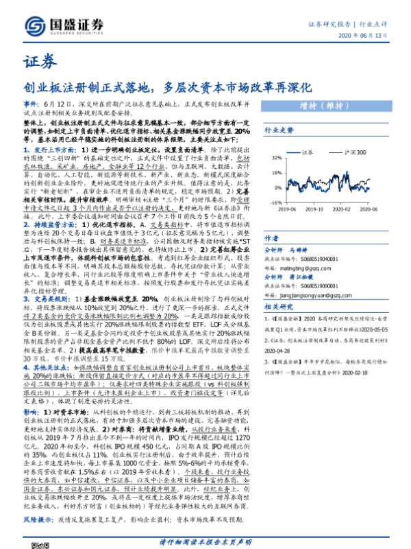 【国盛证券】【20200613】证券行业点评:创业板注册制正式落地,多层次资本市场改革再深化-4页 证券期货研究报告